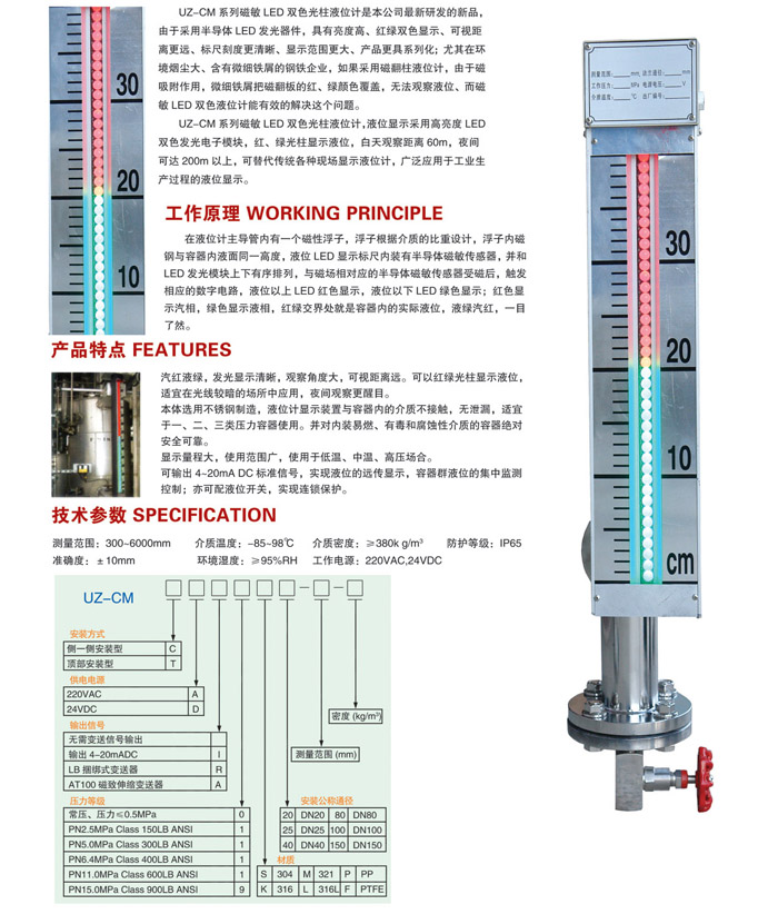2、適用范圍廠:**適用于煉油廠、煉鋼廠、焦化廠、發(fā)電廠、油田聯(lián)合站、化工廠等用戶的大型液體容器上的液位顯示。